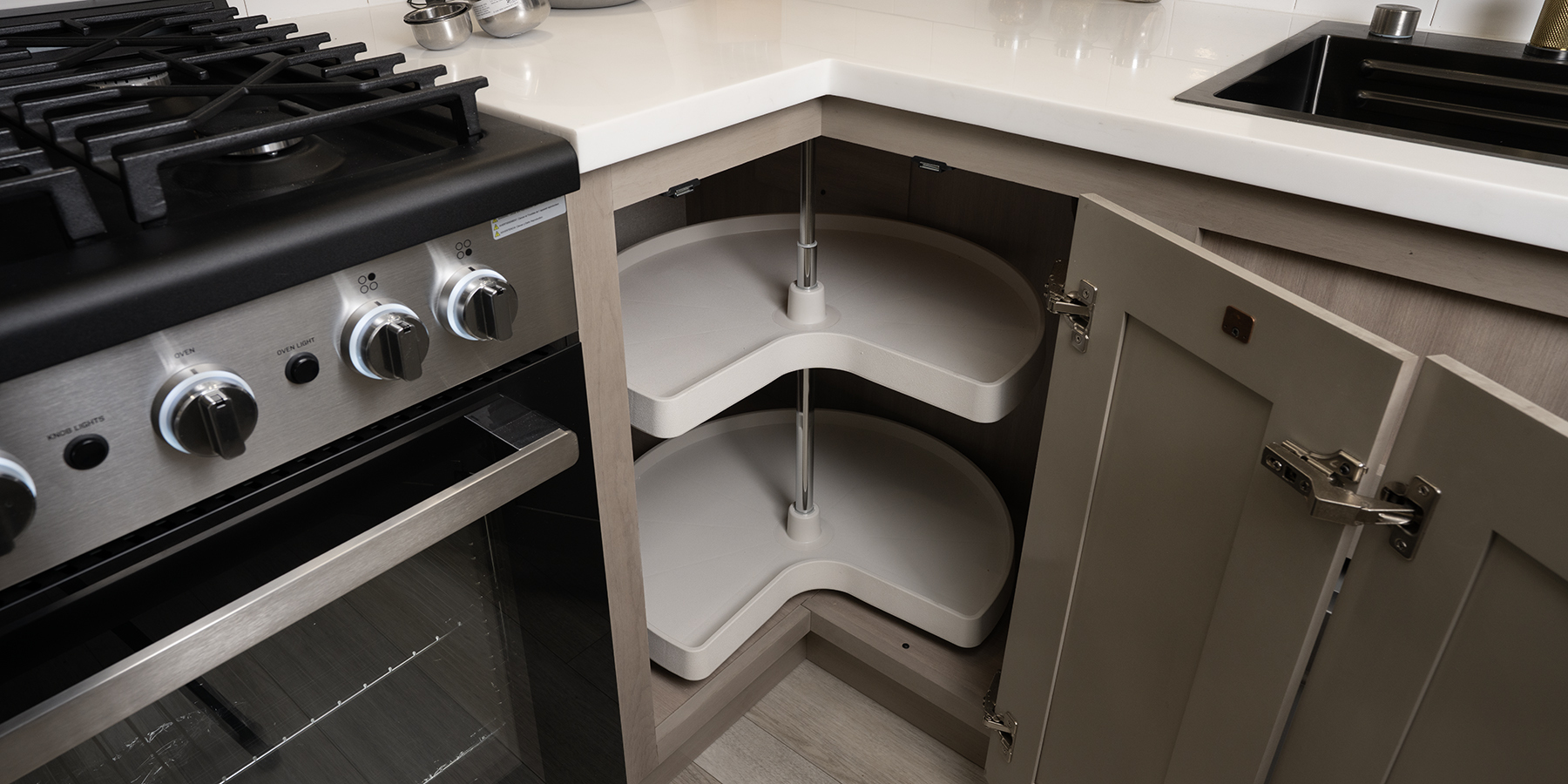 Pinnacle also features the AquaLuxe package—a premium setup that includes a high-capacity tankless water heater, (3) 40-lb. propane bottles for extended use, and the NuvoH2O filtration system. Together, they deliver instant hot water, longer off-grid capability and consistently cleaner, better-tasting water throughout the coach.